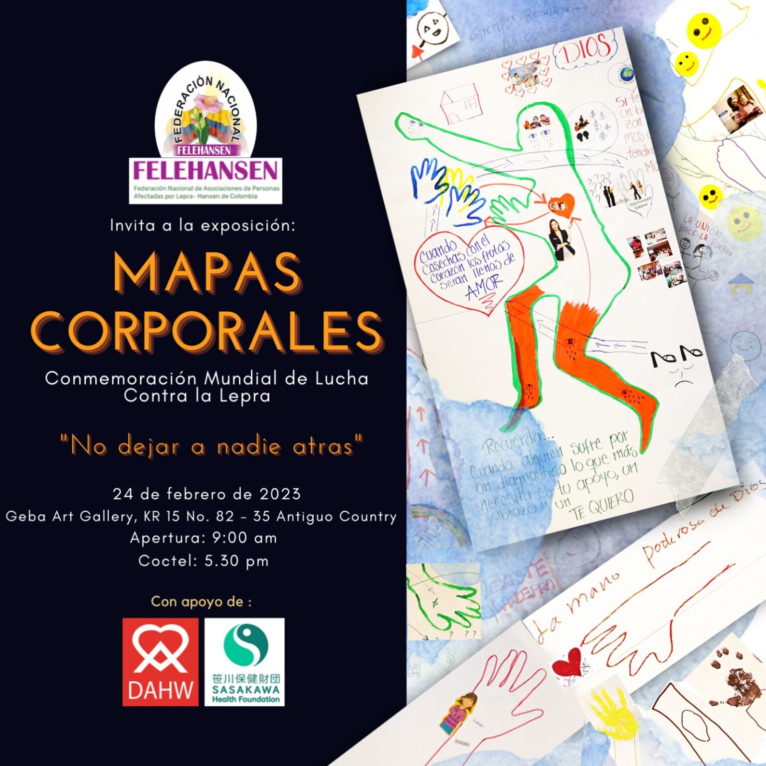 Este viernes 24 de febrero en las instalaciones del «GEBA Art Gallery» antiguo «Country Club», en la Cra 15 N° 82 – 35, se llevará a cabo la exposición «Mapas Corporales» una muestra del talento de nuestros asociados y sus familias, en el que a través del arte quieren hacer visible el amor que les ha llenado el corazón luego de superar la enfermedad de Hansen.