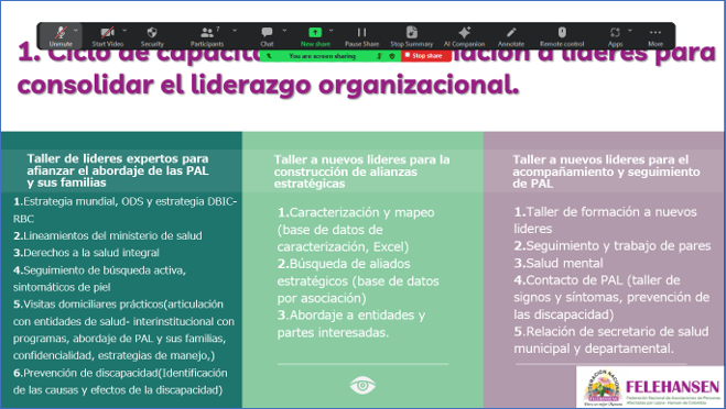 Desde su experticia y conocimiento, la junta directiva de Felehansen facilitó un taller enfocado en ayudar a nuevos líderes a identificar síntomas de piel y brindar un acompañamiento personalizado a la persona afectada y su familia