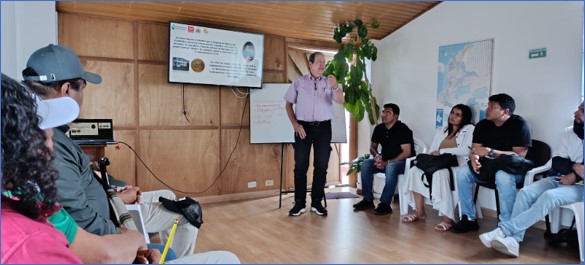 Isaías Dussan Weck, vicepresidente de Felehansen explica a nuevos líderes afectados por Lepra sobre la Historia de la enfermedad de la Lepra o Hansen en Colombia. Durante su presentación, Isaias Dussan expone lo que las personas afectadas tuvieron que experimentar en los lazaretos durante los años de reclusión.