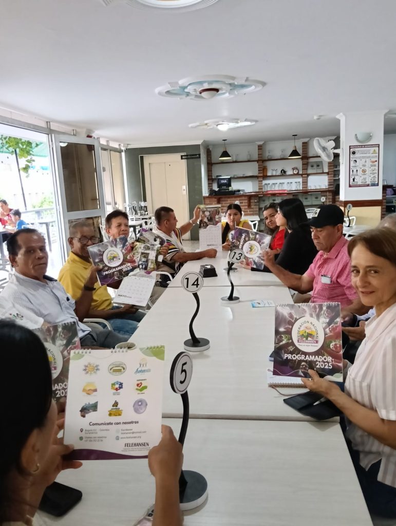 Durante este encuentro, se socializó y distribuyó material educativo preparado por Felehansen, enfocado en la sostenibilidad de la organización y en los programas que Asopaexmeta lidera para mejorar la calidad de vida de las personas afectadas por lepra.